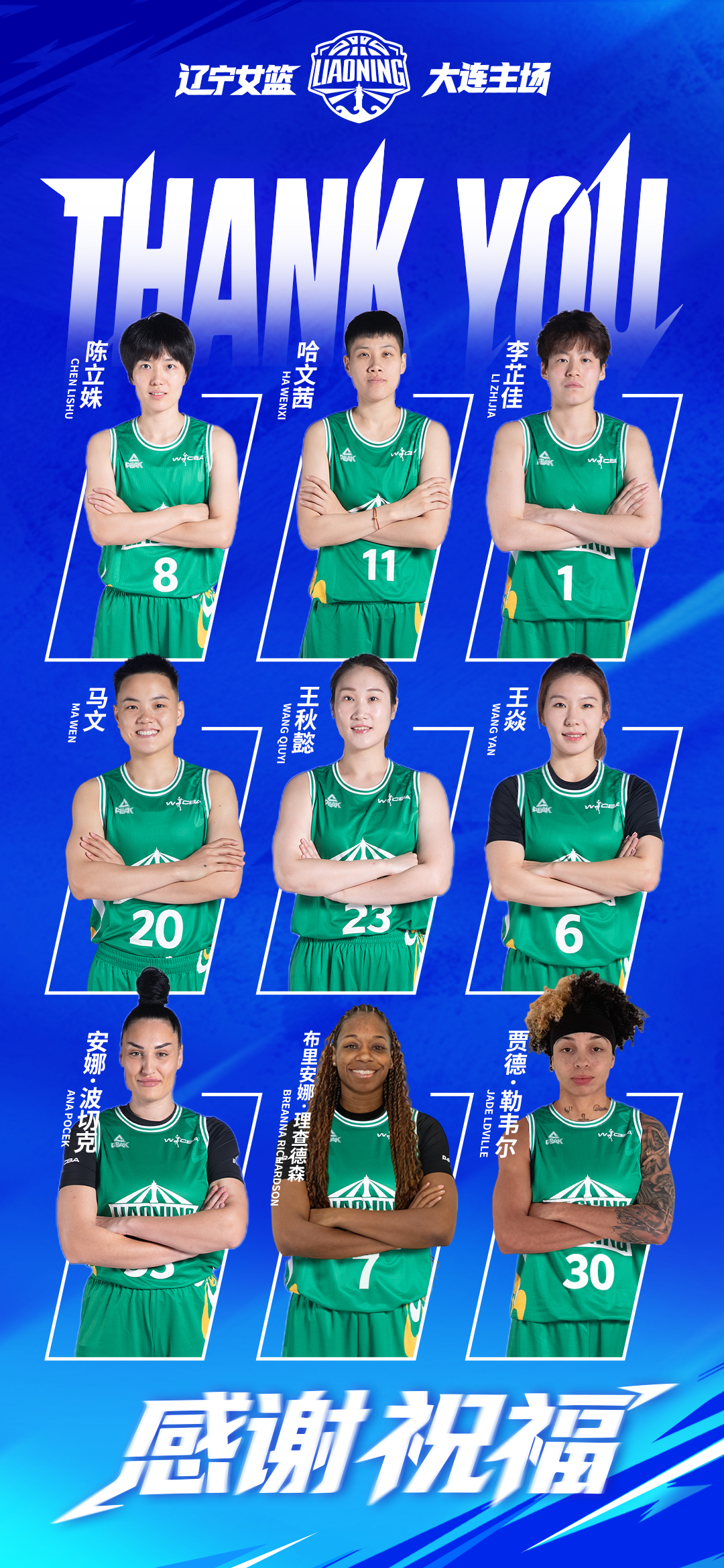 衷心感謝陳立姝、王焱、哈文茜、馬文、王秋懿、李芷佳、安娜·波切克、布里安娜·理查德森、賈德·勒韋爾等球員上賽季為球隊付出的努力與貢獻(xiàn)!