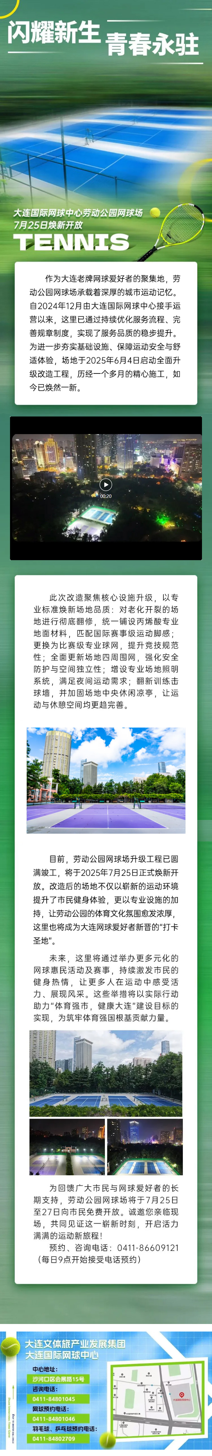 閃耀新生,青春永駐——大連國際網(wǎng)球中心勞動(dòng)公園網(wǎng)球場(chǎng)7月25日煥新開放