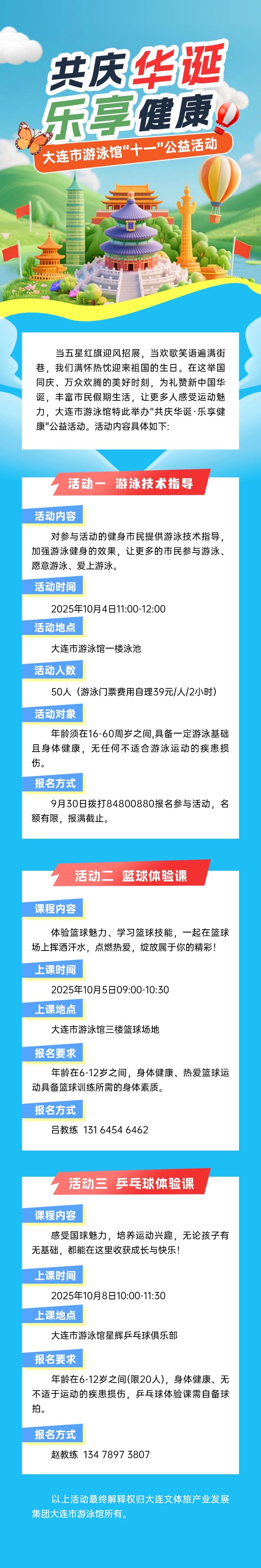 大連市游泳館“十一”開放時(shí)間及惠民活動(dòng)安排