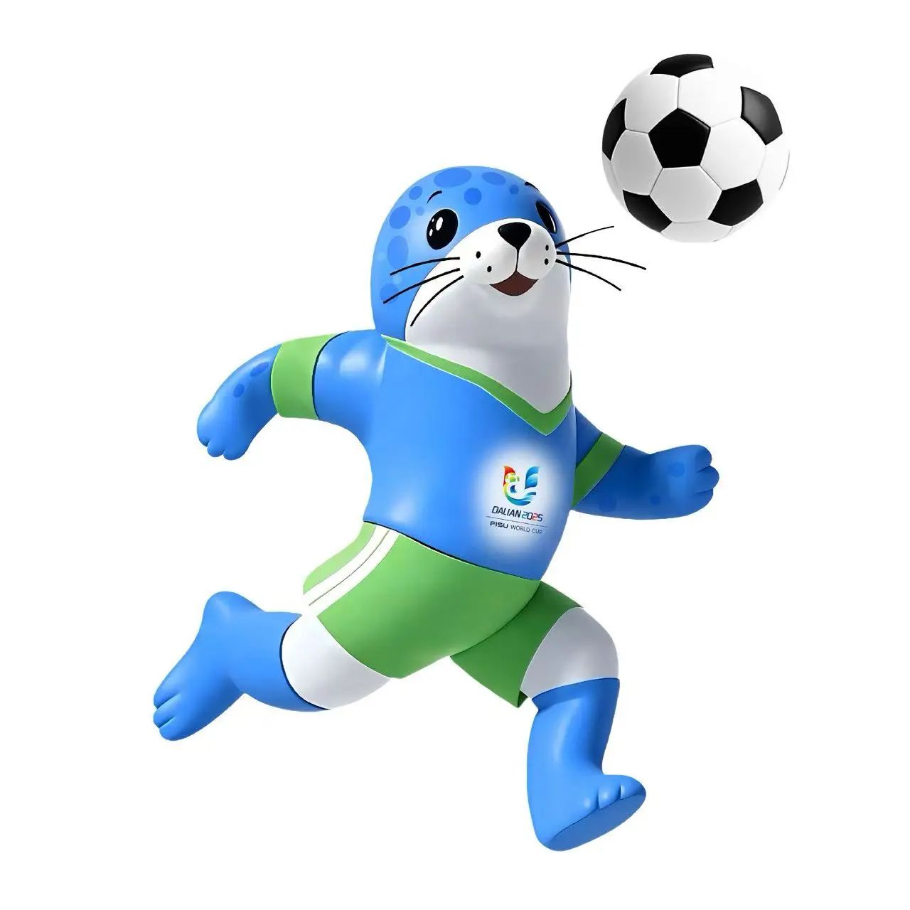 吉祥物的亮相將現(xiàn)場(chǎng)氣氛推向高潮。以斑海豹為原型設(shè)計(jì)的吉祥物“連寶·斑海豹”,標(biāo)志性的圓弧頭型與斑點(diǎn)紋路極具辨識(shí)度,黑曜石般明亮的雙眼靈動(dòng)傳神,與大學(xué)生足球運(yùn)動(dòng)員在賽場(chǎng)上的頑強(qiáng)毅力、拼搏激情交相輝映,淋漓盡致地展現(xiàn)出當(dāng)代大學(xué)生的青春活力與進(jìn)取精神。